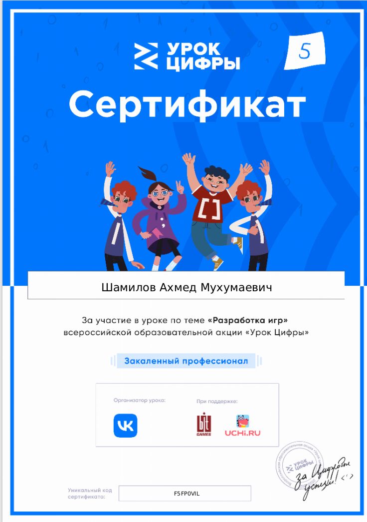 участие в данном мероприятии. «Урок цифры» по теме «Разработка игр» посвящён